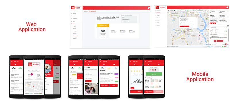 The solution uses day-to-day work elements of organization via mobile phone with GPS, a desktop/laptop with internet and empowers the managers with a map based view of real time location updates of the team’s activities.